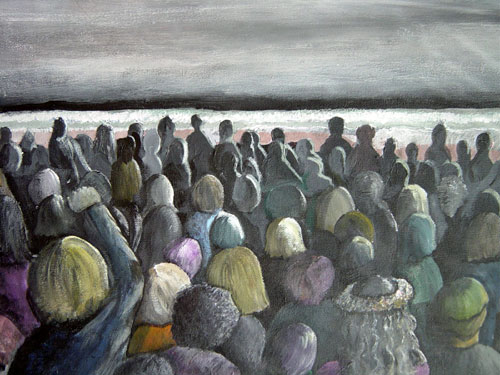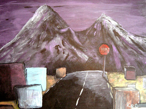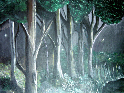 These three paintings were all done within the same year. I was around 23 when they were done (2001-2002). "Endtoxication" was painted gradually throughout the summer and the other two were each completed in one evening. As you can see, I was interested in dark colors and a lot of contrast. I used acrylics for all three.
