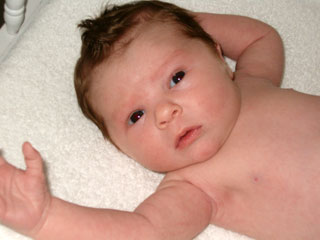 When Emily Kate was born, she came out screaming, and pulling her thick black hair. They placed her, screaming, on the table beside Sarah, and the second I said hello to her, she fell silent, and stared right at me. When Sarah held her, she was so at peace. It was amazing to see how quickly she just seemed to "know" who Mom & Dad were.