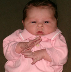 When you're feeding her a bottle, she'll stare at you, and she will reach up, and start playing with your cheek, almost stroking it. It's as if she's saying... "Thank you SOOOOOO much!!!"