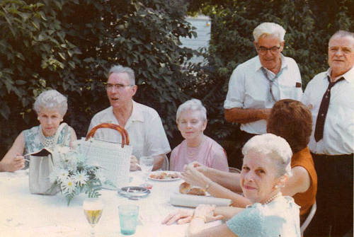 last row: tom groening, donny groening, uncle bob, gail groening, tim groening, jimmy, michael mcgunnigle, bobby krohn, dad, uncle joe, billy rooney (aunt gertrude's son), greg fleming (rosemary's husband) |