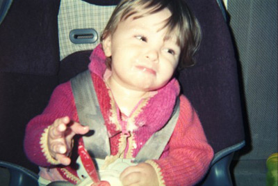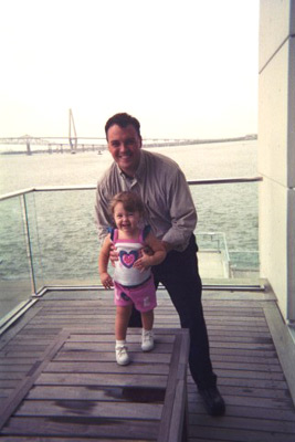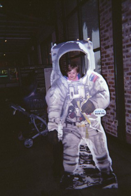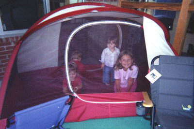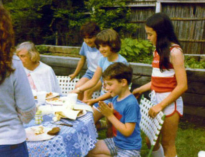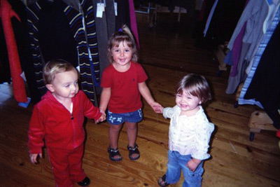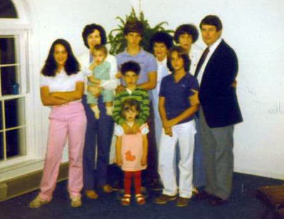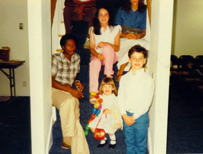 Caryn, Katie, and David on stairs at East End Church of Christ in 1981
