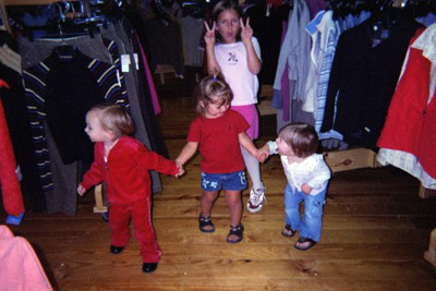 Ryan, Maeve, Keagan, Emily goofing around in the store