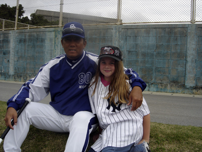 Shannon with the Japanese major baseball team - the Chunuchi Dragons -