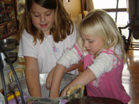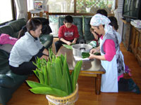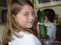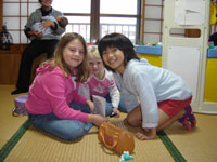 On Saturday we went to our Japanese friends' house for a traditional new baby celebration. I made a friend named Saaya. There is a type of food we made called Muchi! First you have to mix dough - it's a lot of hard work! Molly and I made the most! Once you mix up the dough, you put it on this huge leaf, fold it in a certain way and then you tie it up. As soon as you've folded a lot - you have to steam it. I just like making it - I don't like eating it! You then give the Muchi to all your relatives. Even though we don't know that much Japanese, and they didn't know that much English, we really had fun playing together!