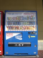 Soda machines in Okinawa are everywhere! If you ever bring change off base, wherever you step there is a soda machine! They have sodas such as Coke and Fanta and you can even find coffee and tea. I even got to get White Strawberry Fanta! It was incredible! Sodas cost about 100-150 Yen. Joe collects the thingys off the tops of the cans - he already has about 260 of them. If you come to Okinawa, you will be amazed at how many soda machines there are.