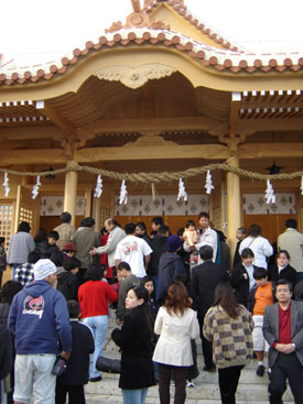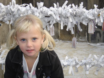 On New Year's Day, we did something very different! We went to a Shinto shrine! Near the shrine, there were games, food and mini shops! I won a soccer ball by playing one of the games! At the shrine, they have an old Japanese New Year's tradition. After paying ¥100, you get your fortune told for the coming year. If it's a bad fortune, the tradition is to fold it up and tie it to a wall with all the other bad fortunes. All our fortunes were good ones! You would love it! Unfortunately, it only happens at New Years though.